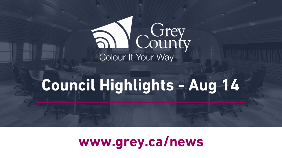 Grey County Council met August 14, 2025 in the Grey County Council Chamber and virtually on Zoom. The meeting was immediately followed by a session of Committee of the Whole. A recording of the meeting can be found on the Grey County YouTube Channel.
