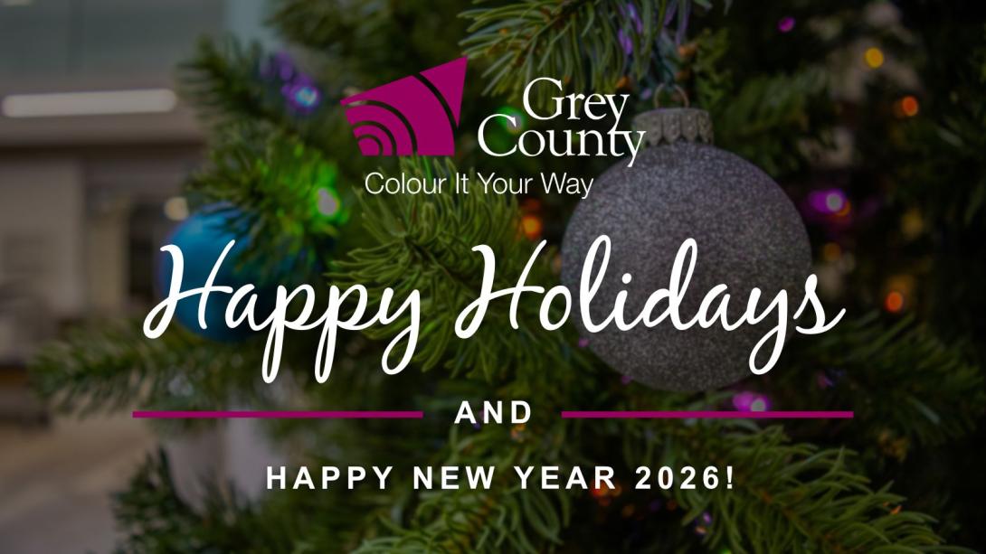 The holiday season is here and as the year comes to a close, many Grey County facilities and services will be closing or adjusting hours as we celebrate the season, reflect, and recharge for the year ahead.