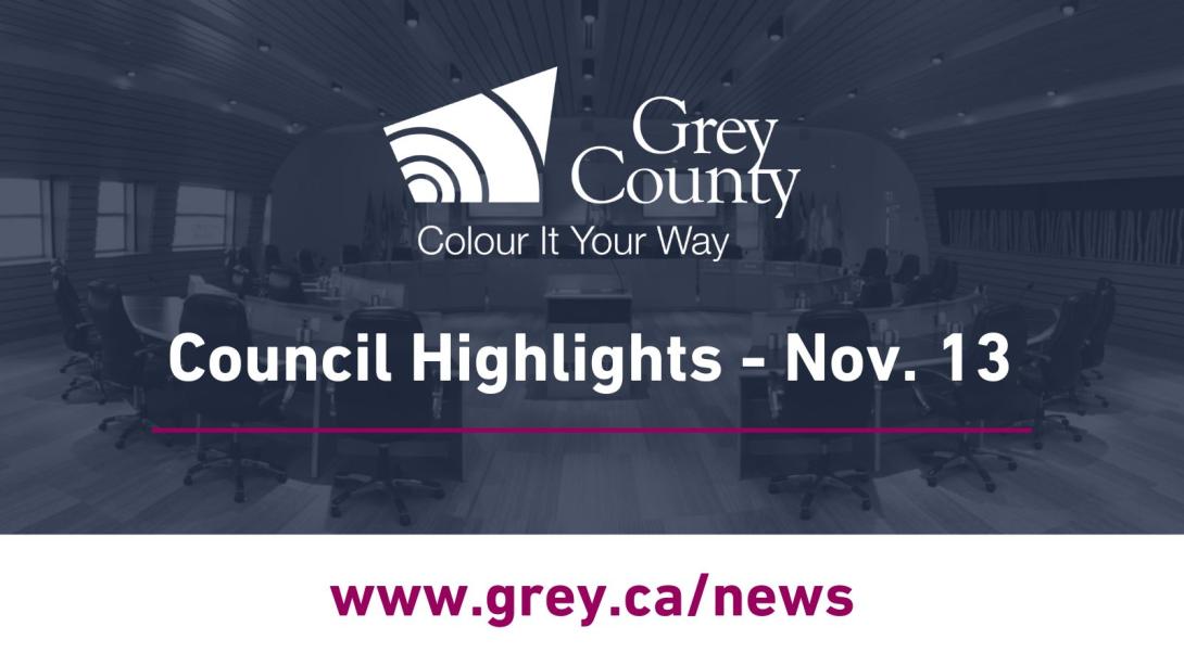 The Clerk’s Department maintains the official records for Grey County. This publication is intended to provide meeting highlights only. For official records, please refer to the meeting minutes, or contact the Clerk’s Department at 1-800-567-4739.