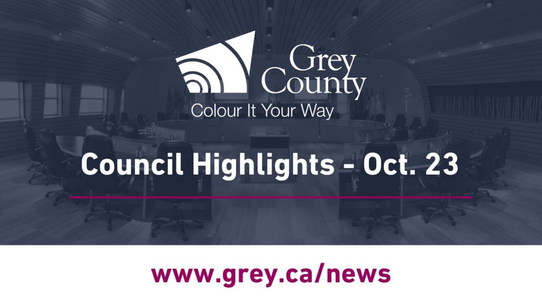 The Clerk’s Department maintains the official records for Grey County. This publication is intended to provide meeting highlights only. For official records, please refer to the meeting minutes, or contact the Clerk’s Department at 1-800-567-4739.